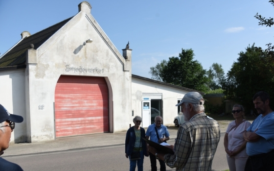 bl.a. forbi den gamle smedje, hvor der under Anden Verdenskrig havde